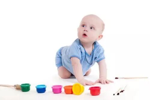 一岁的孩子,你可以给他介绍笔了。但这个时候他拿笔,与其说写字不如说运动,拿着笔,他敲敲敲,哎,敲出一个印记来了,他也会很高兴的。