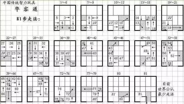 在中国,华容道的最快走法是100步,后来经过计算机的研究,81步才是最终解法。不过对于我们来说,几步解完不重要,训练专注力才是最重要的。