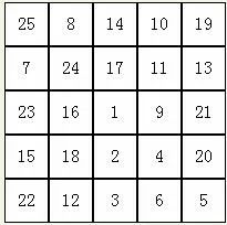 在一张有25个小方格的表中,将1-25的数字打乱顺序,填写在里面(见下表),然后以最快的速度从1数到25,要边读边指出,同时计时。