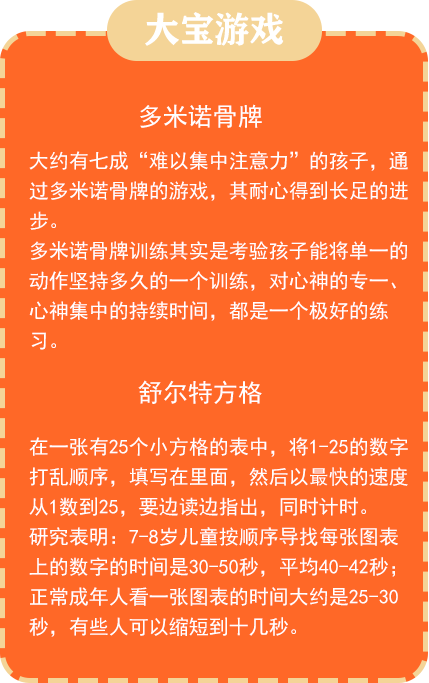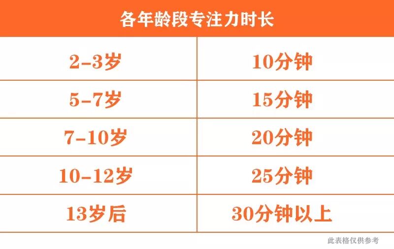 下面是一组不同年龄的专注力时间表,如果孩子在此期间,就证明专注力没有问题。