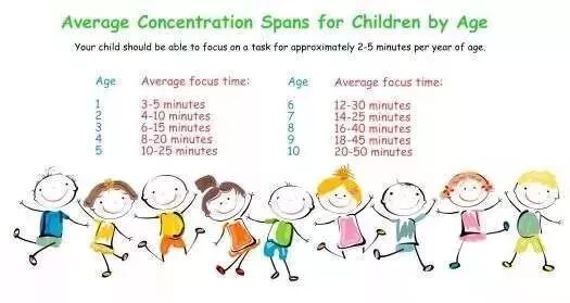 广泛而言,在接受优质教育的前提下,孩子的专注力会伴随年龄增长而递增,通常增长幅度在5分钟以内。