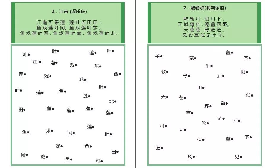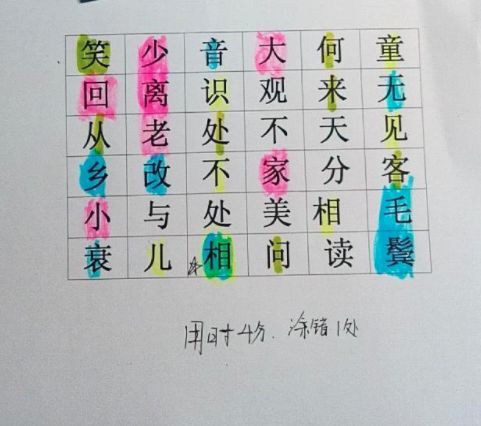 可随意在表中填入字,打乱顺序,然后按照诗句的顺序,迅速一次找出这些字。