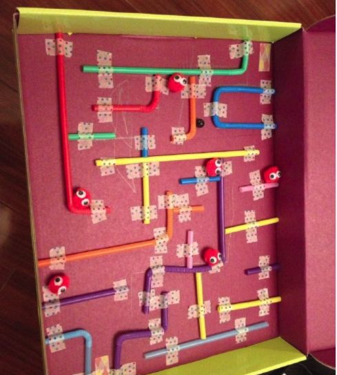 选好了迷宫图后,可以跟小朋友一起利用纸盒,牙签,胶带等材料,把书上的迷宫图拼出来,这样还可以锻炼孩子的观察能力和动手能力。