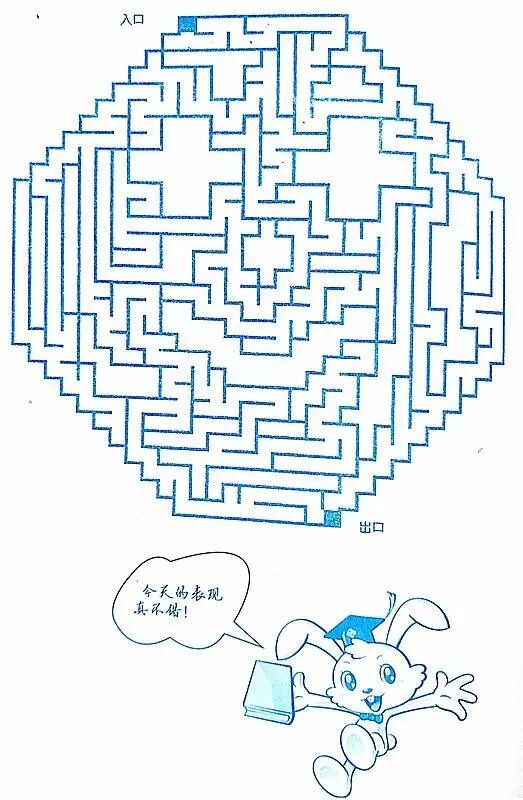 从下图的入口开始,在最短的时间内快速找到出口,并用铅笔画线,视觉追踪训练孩子视幅能力、学习注意力和考试注意力,帮助孩子养成专心学习的良好习惯。