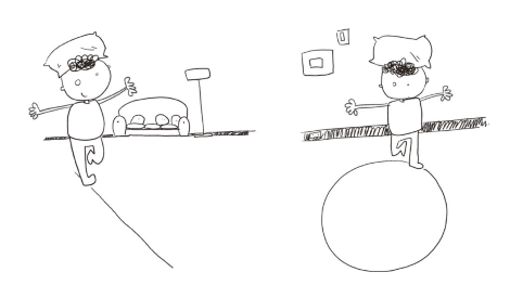 在地上划出一条直线,或者用宽胶带贴出一条线。让孩子头顶枕头或一本书,沿着直线把物品从起点运输到终点,过程中不允许用手扶头上的物品,如果掉下来就从从头开始。