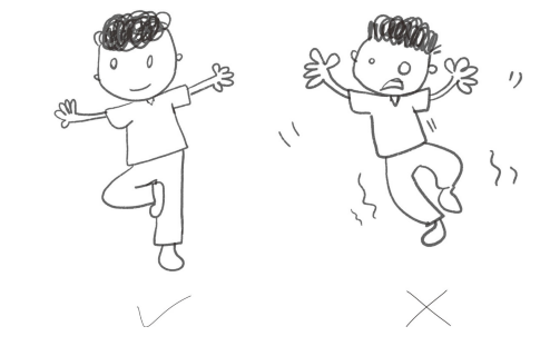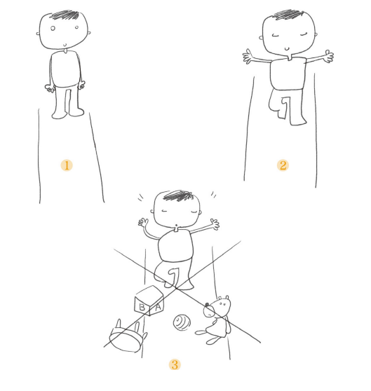 让孩子站直身体,目视前方双手侧平举,然后尝试一只脚保持平衡,大约 1 分钟以后换脚。站立时间逐渐延长后,可以通过孩子头顶纸杯、闭眼等增加练习的难度。