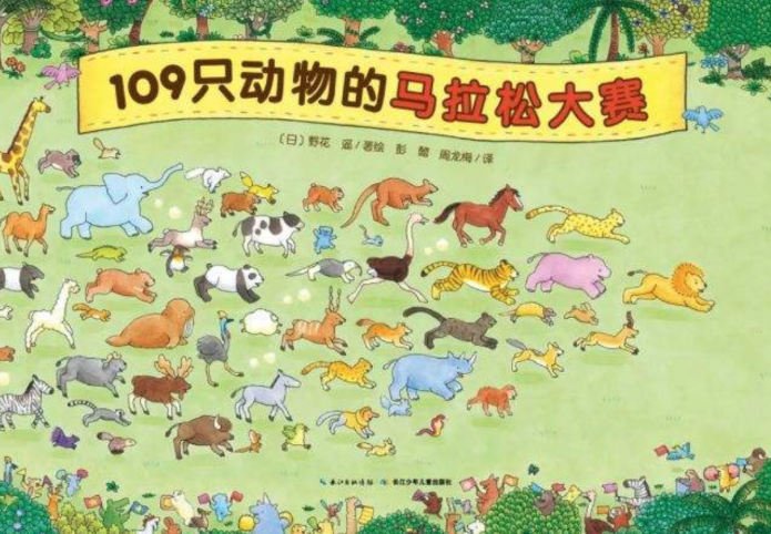 比如,日本绘本作家野花遥有一套很出名的专注力游戏书,其中一本叫《109只动物的马拉松大赛》,千寻反复读过很多遍。