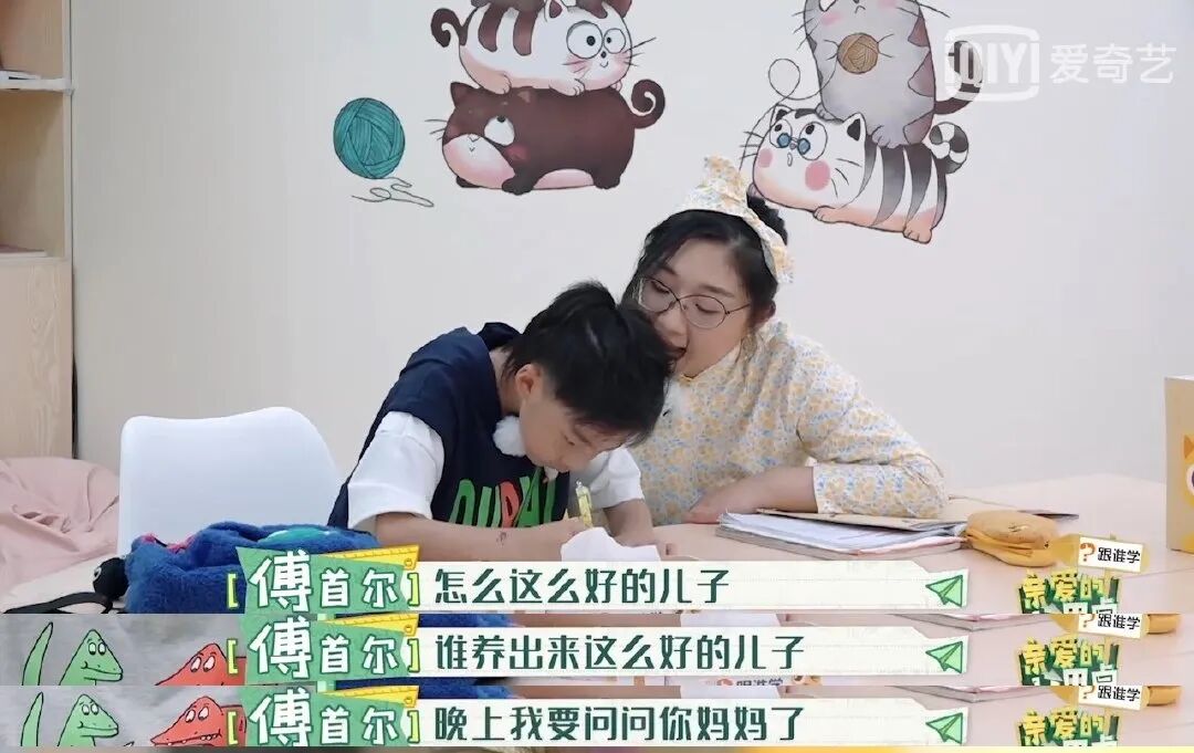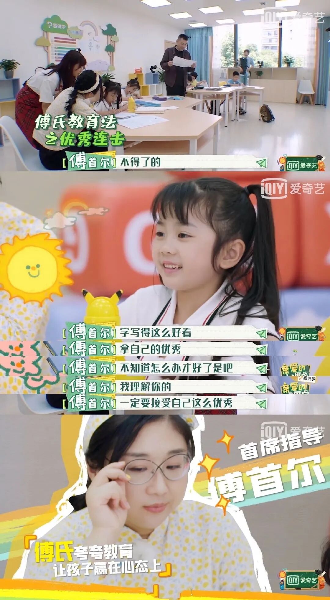 傅首尔用一颗善于发现孩子闪光点的心,去给孩子们以具体的鼓励和夸奖,不仅是语言上的,还有肢体上的,摸摸头、爱的抱抱,这些语言和动作真的能抚平孩子的小情绪,让他们可以用更平和、更自信的心态去面对作业。