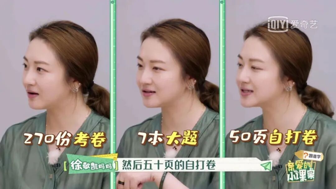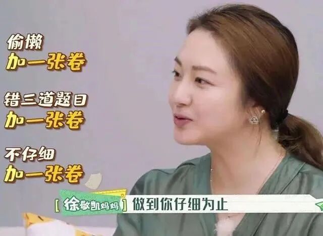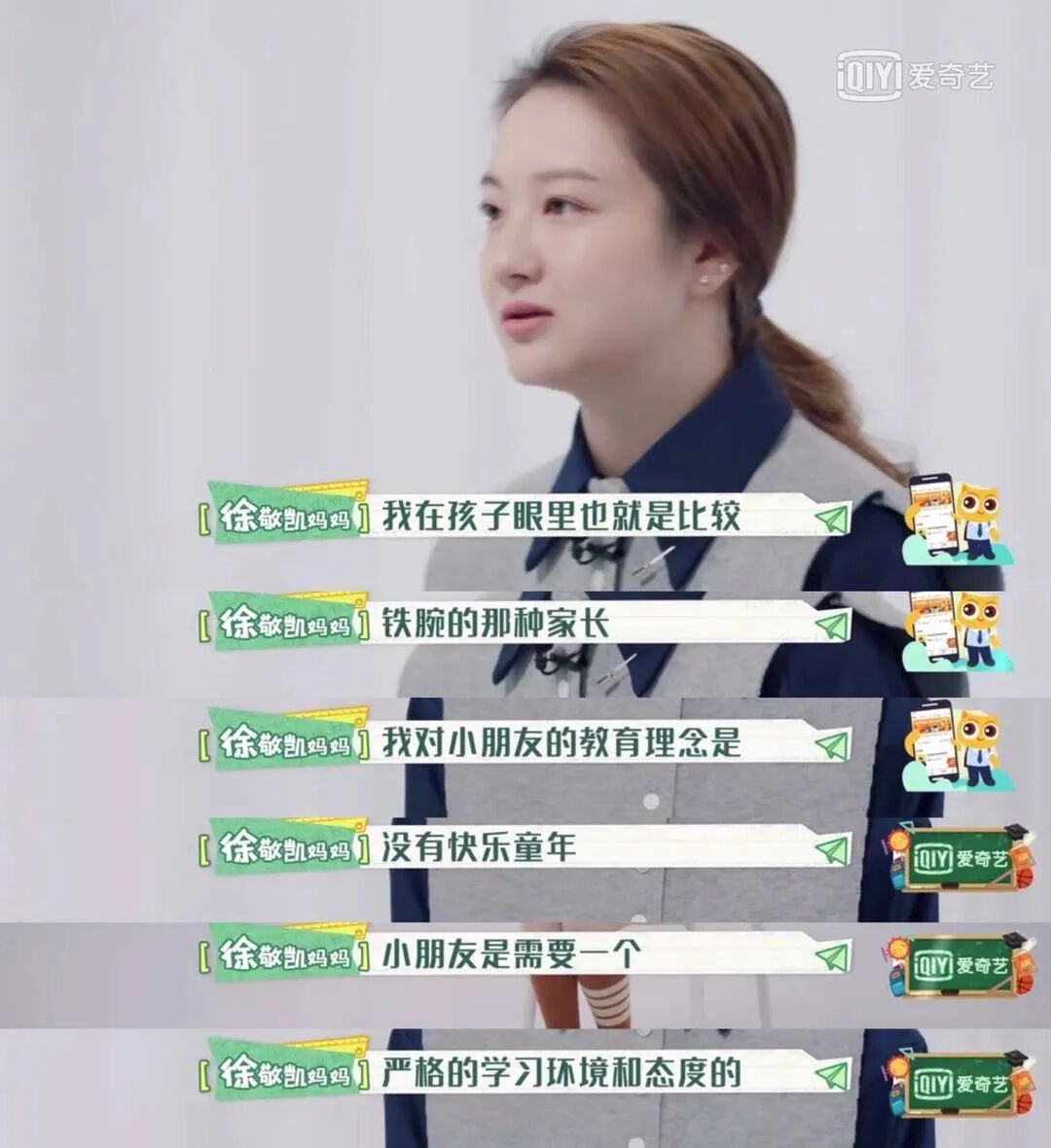 《亲爱的小课桌》里有一位特别“显眼”嘉宾,她就是7岁男娃徐敬凯的妈妈。她在“鸡娃”这一点上似乎做到了极致,还直言自己的教育理念是: