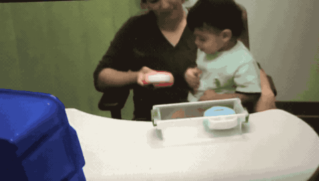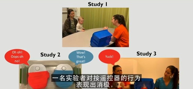然后,Sara教授偷偷观察这些孩子,看他们会选择拿哪个遥控器。