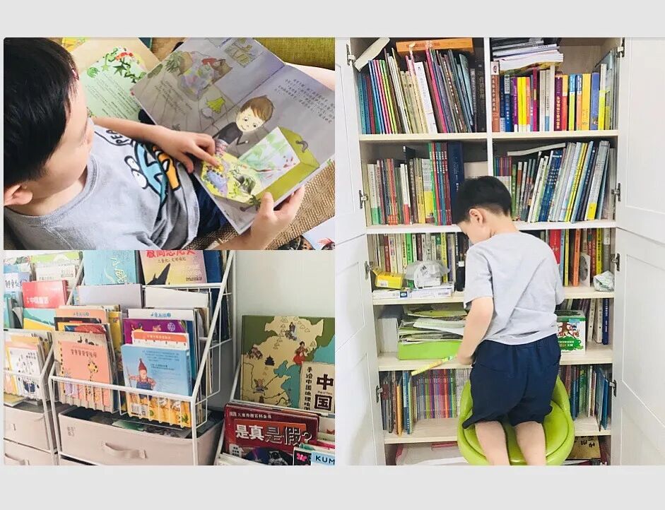 暑假无聊的时候,他会在房间里或者沙发上翻着自己的书。