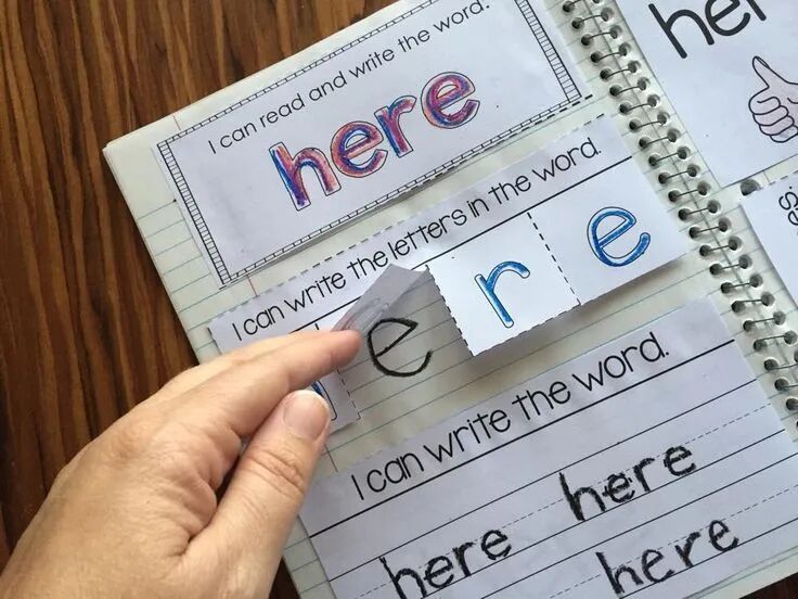 最后,把所有的素材组合在一起,粘贴在笔记本上,一款互动式的单词笔记页就做好啦!