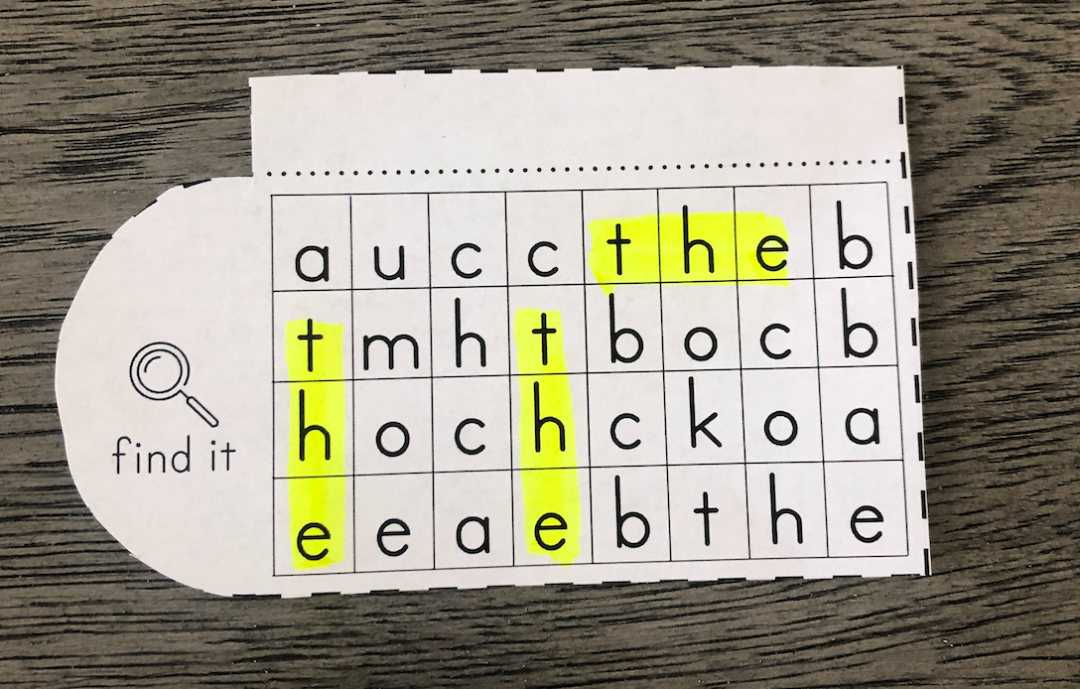 这款笔记中,单词的学习形式充满花样。有找单词:在这么多的字母罗列中,找到学习的视觉词“the”:
