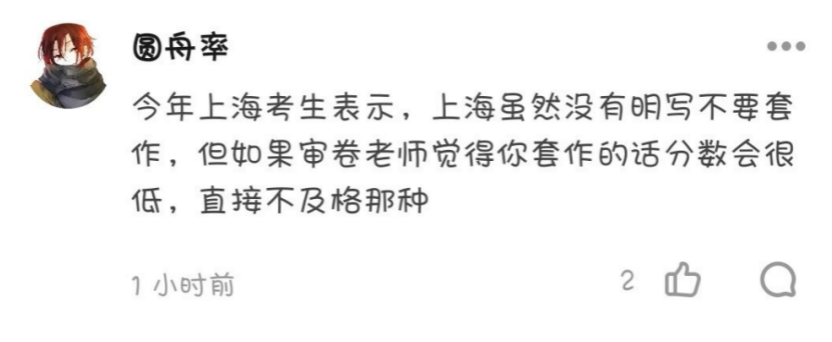 而据网友反馈,其它没有明写“不要套作”的地方卷,阅卷老师也一样高度重视这个规则。