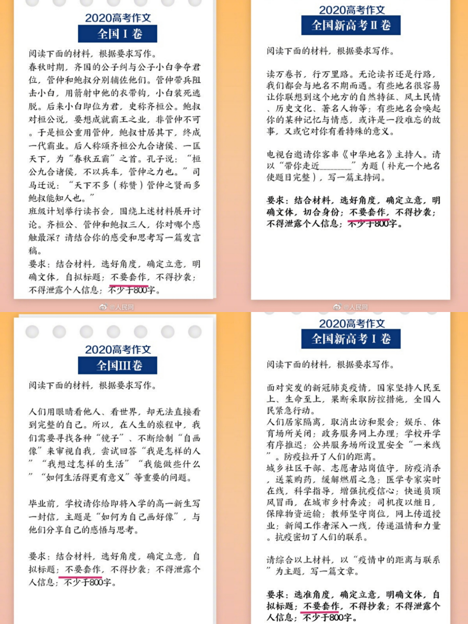 与往年相同,第一科语文刚结束,高考作文题就已经上了热搜。仔细看完11个作文题,我留意到除北京上海江苏三地外,其它考卷尤其是备受关注的全国卷,作文要求里都出现了四个字:不要套作。
