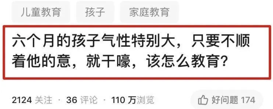 认为6个月的孩子吃饱喝足了还哭,就是脾气大; -
