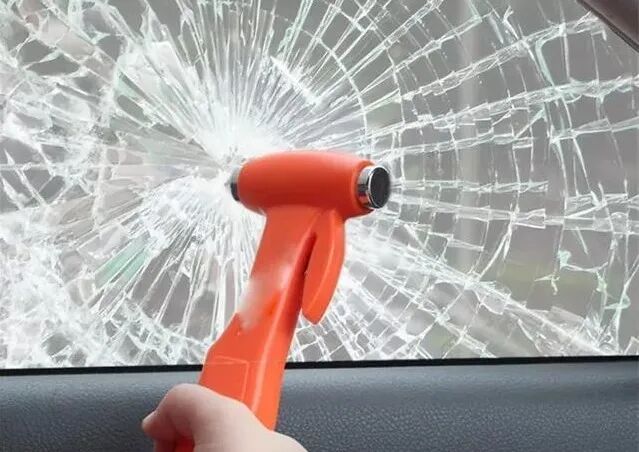 家长最好在车内备有一把安全锤,并教会孩子在何种情况下可以用来敲碎车窗玻璃逃生。