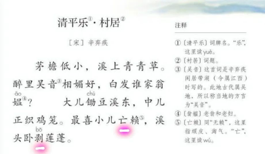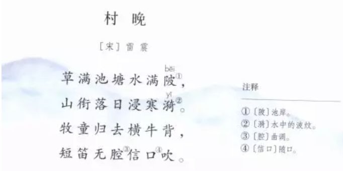 下面,老师就按照“统编教材”古诗文的编排顺序,把我们通常弄不明白的一些古诗中的字音,以“统编教材”为依据,逐一正音。