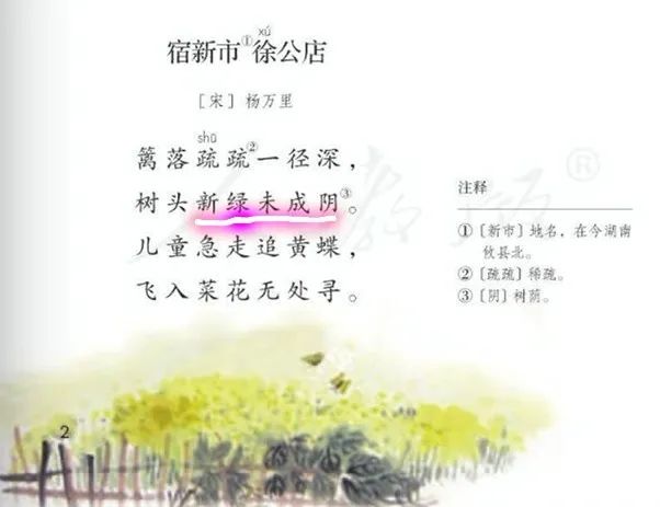 13.篱落疏疏一径深,树头新绿(lǜ)未成阴。(四下)