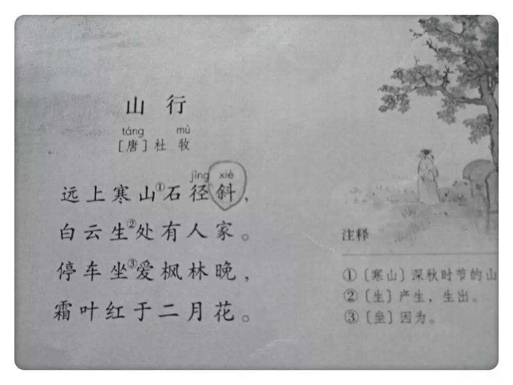 6.远上寒山石径斜(xié),白云生处有人家。(三上)