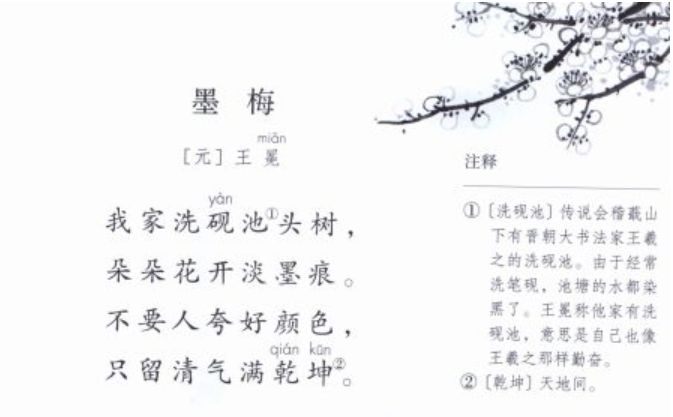 18.我家洗砚池头树,朵朵花开淡墨痕。不要人夸好颜色,只留(liú)清气满乾坤。(四下)