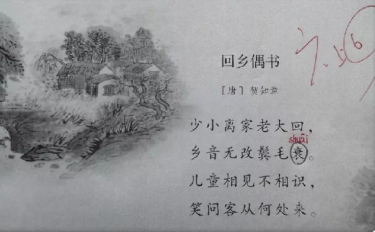 34.少小离家老大回,乡音无改鬓毛衰(shuāi)(六上)