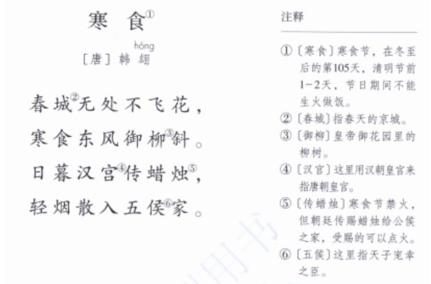 35.春城无处不飞花,寒食东风御柳斜(xié)。(六下)
