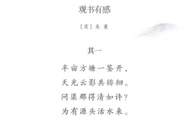 25.问渠那得清如许,为(wèi)有源头活水来。(五上)