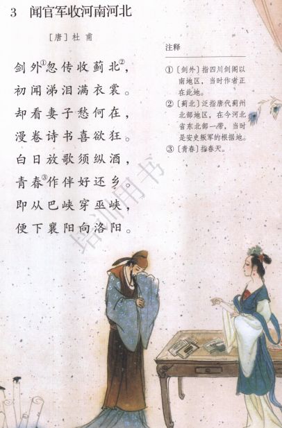 29.剑外忽传收蓟北,初闻涕泪满衣裳(cháng)。(五下)
