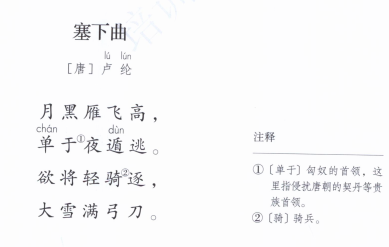 17.欲将轻骑(qí)逐,大雪满弓刀。(四下)