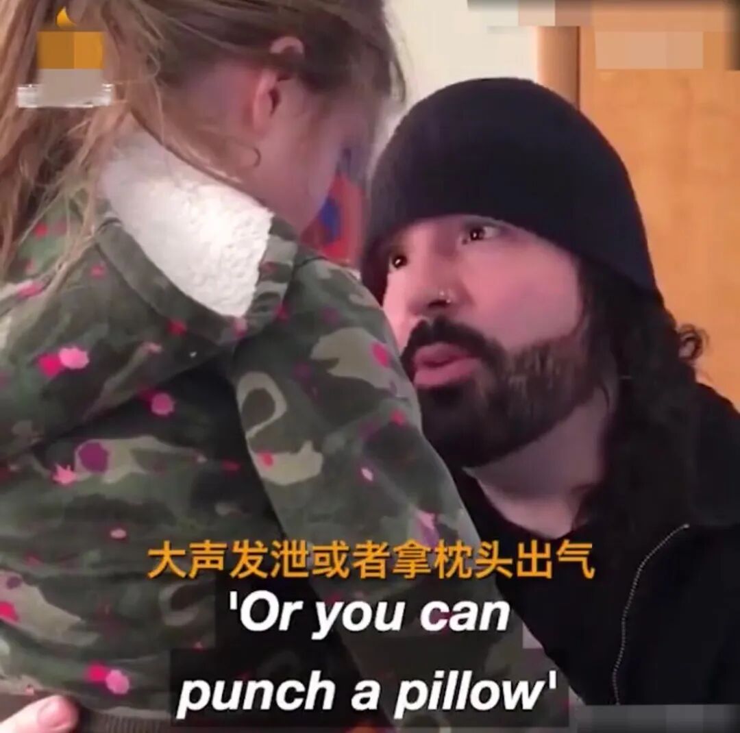 最近在美国的社交网络上,这个关于“爸爸教给孩子处理愤怒情绪“的视频传疯了。在油管上,这个视频达到了近50W的播放量。