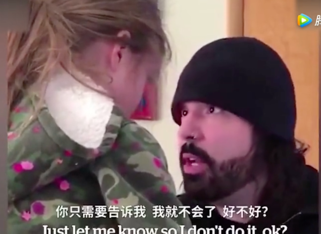 视频中女儿很生气,因为爸爸骂了她。爸爸告诉她:“宝贝,我只是逗你,我不是真的想骂你。”