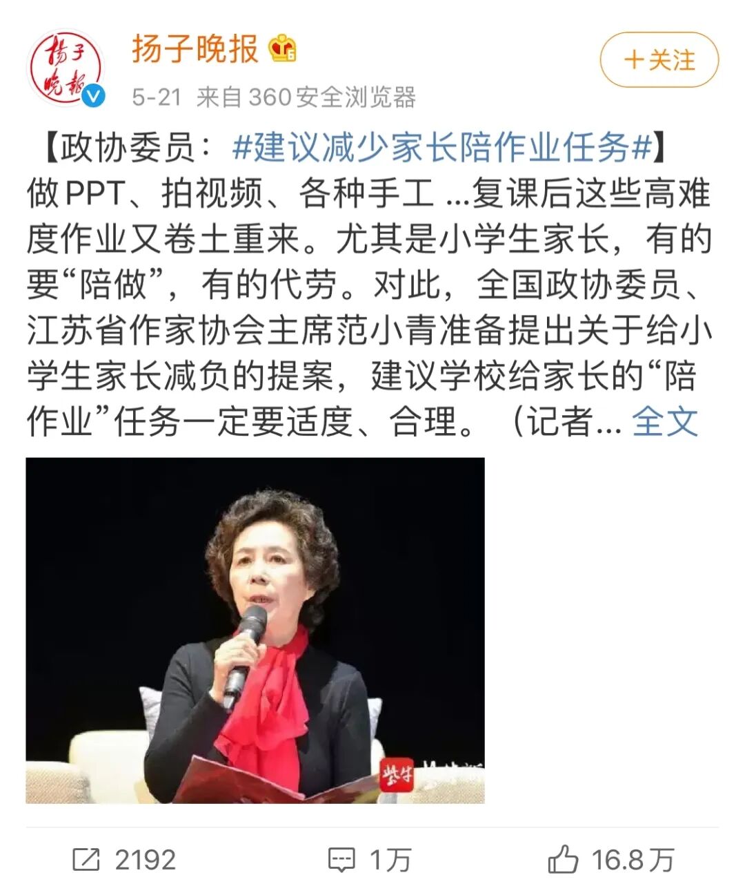 前两天,看见了一则新闻:全国政协委员呼吁减轻家长陪作业任务。