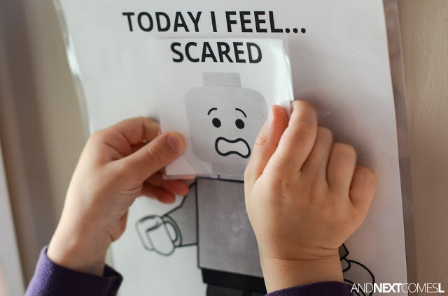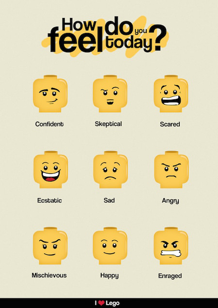 我们也可以利用lego小人的表情卡,来让孩子学会描述自己的情绪: