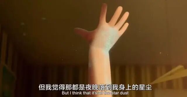 直到一天,小男孩跟另外三个小伙伴产生分歧,因为三个伙伴都以身上的伤痕非常丑陋。唯独蓝色伤痕的小男孩不这么认为,他甚至非常乐观地将自己身上的伤痕想象为星尘,它们趁着夜晚悄悄降临到自己身上。当好朋友离去,小男孩很伤心。