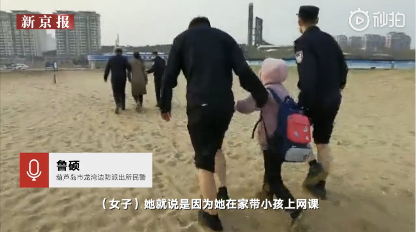 近期,辽宁葫芦岛市民报警称一对母女欲跳海轻生。民警赶到现场发现,一年轻女子正拉着一名10岁左右女孩往海里走。4位民警手拉手下水,将母女拉回岸边。据民警了解,女子是因为女儿上网课期间的学习问题,一时想不开带她到海里“吓唬”孩子。