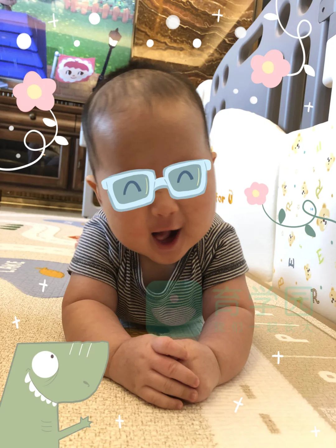 “前两天,我俩一起玩,我顺手拿了个玩具鳄鱼放在他面前,逗他过来抓。结果,他因为够不着就嗷嗷叫开了。”