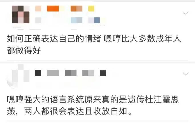 其实嗯哼的表达能力跟家庭的教育密不可分。杜江和霍思燕的有爱就不多说了。