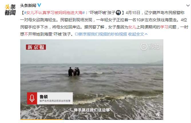 路人看到这个情形,以为这对母女要跳海轻生,紧忙打电话报警。