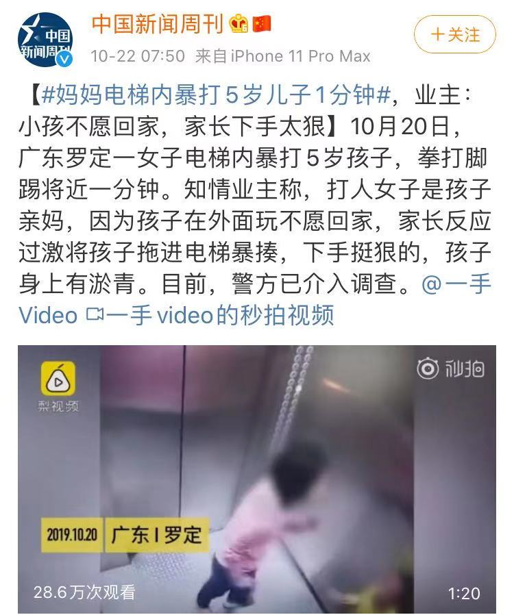 结果妈妈生气到把儿子拖进电梯里,暴打了整整一分钟。