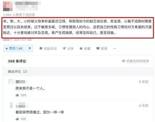 “小时候父母争吵画面仍记得,导致现如今的缺乏信任感、安全感,心智不成熟时期甚至想过以自杀结束。
