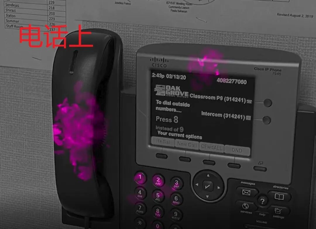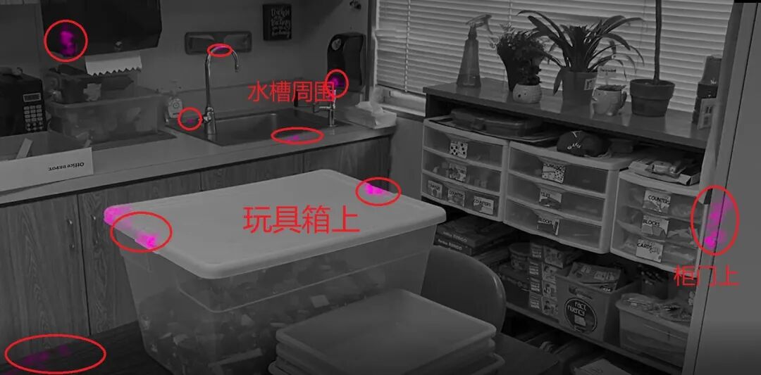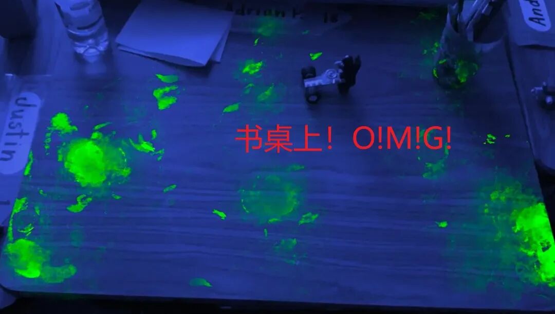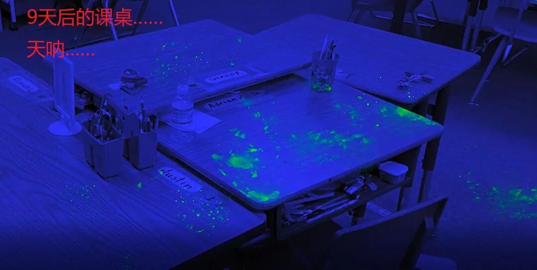 发现水槽、电话、储物箱、纸巾架、墙壁以及教室的其他地方,到处都沾满了粉末!