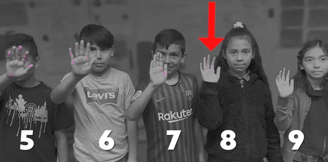 一直到7和8,8和9握完后,第8个孩子手上依然有明显的“病毒”残留!也就是说,一个人手上携带病毒,至少可以传播7个人!