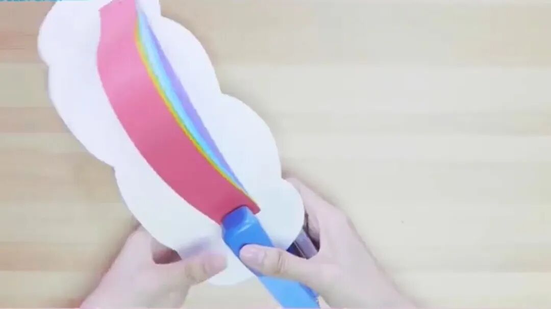 02. 用订书机固定纸条两端,继续固定在“白云”上方。