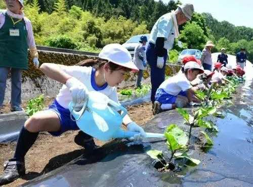 许多日本中小学校都有一块或大或小的田地,供教师对学生进行基本的劳动教育。教学田地不只是农村学校才有,一些城市学校也有。有条件的学校会有一片小花园,或者小菜园。没有条件的,会用花盆代替。另外还有一些学校会跟政府借用一块地来做种植教育,比如在政府规定的公园里,河堤边上等。