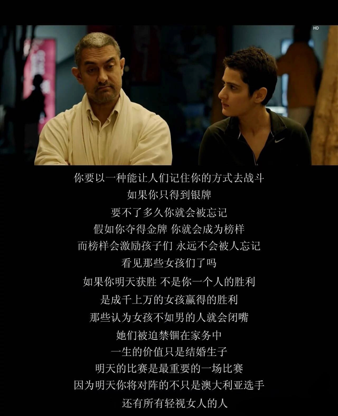 影片中,阿米尔.汗的硬派作风、以及他对女儿的充分了解、支持和鼓励,才让他的两个女儿最终获得了摔跤冠军。