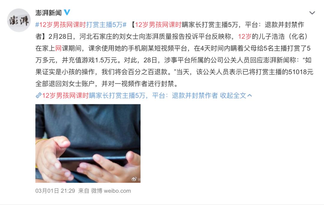 还有些孩子,把网课丢在一边,痴迷于打赏直播博主: