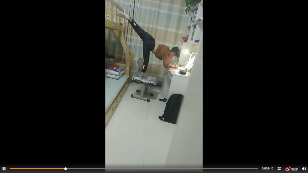 再看这位小同学,写着写着就可以来个后踢腿。果然坐着学,已经无法满足他喷薄而出的热情,站立,劈叉,腾空,倒立姿势越难,学习的劲儿越大!