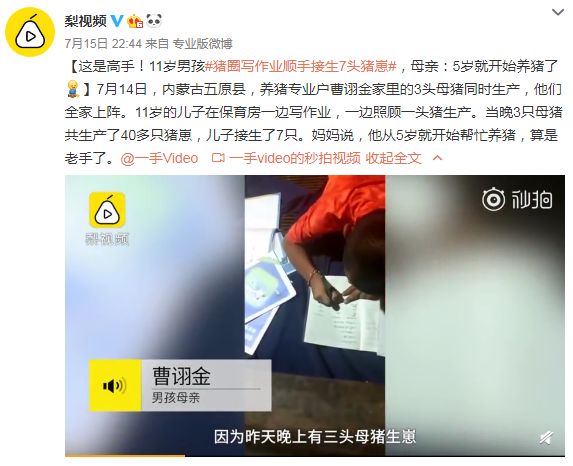 有的,来看看这位11岁的小同学,5岁就开始养猪,在猪圈里写作业也是家常便饭,学习的间隙,还能顺手帮着接生了7头猪仔!