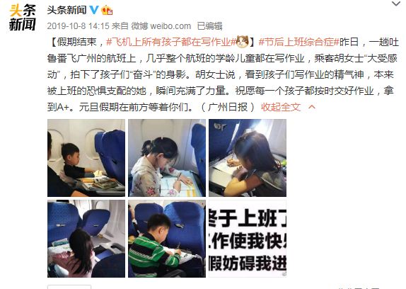 假期结束时,在飞机上遇到一群学龄儿童,无一例外地在赶作业。